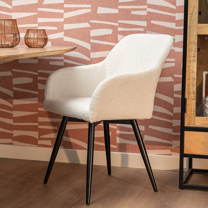 Het stevige onderstel, gemaakt van zwart gepoedercoat metaal, zorgt voor stabiliteit en een stoer, industrieel accent. De poten zijn eenvoudig te monteren, zodat u binnen korte tijd kunt genieten van deze elegante en functionele eetkamerstoel.