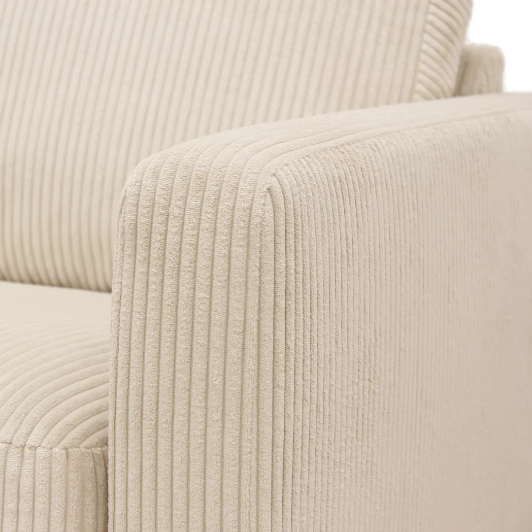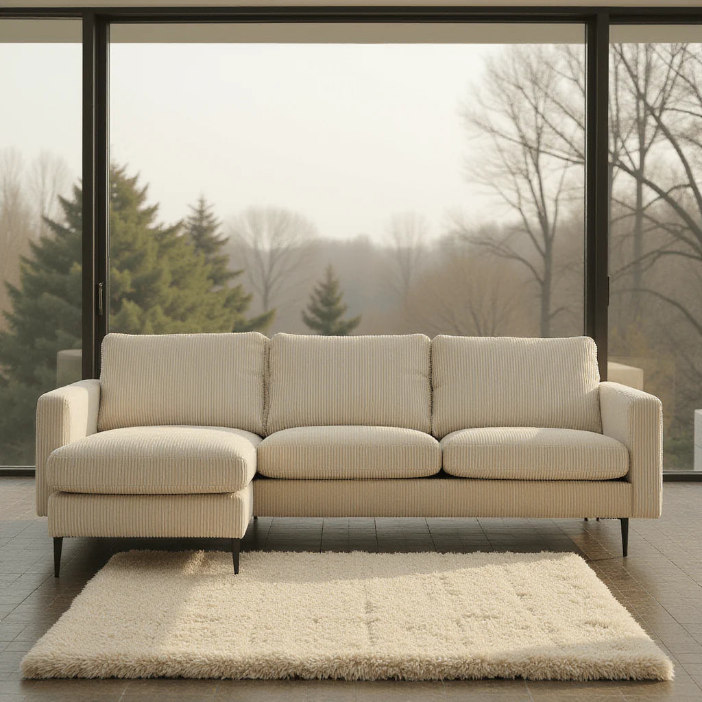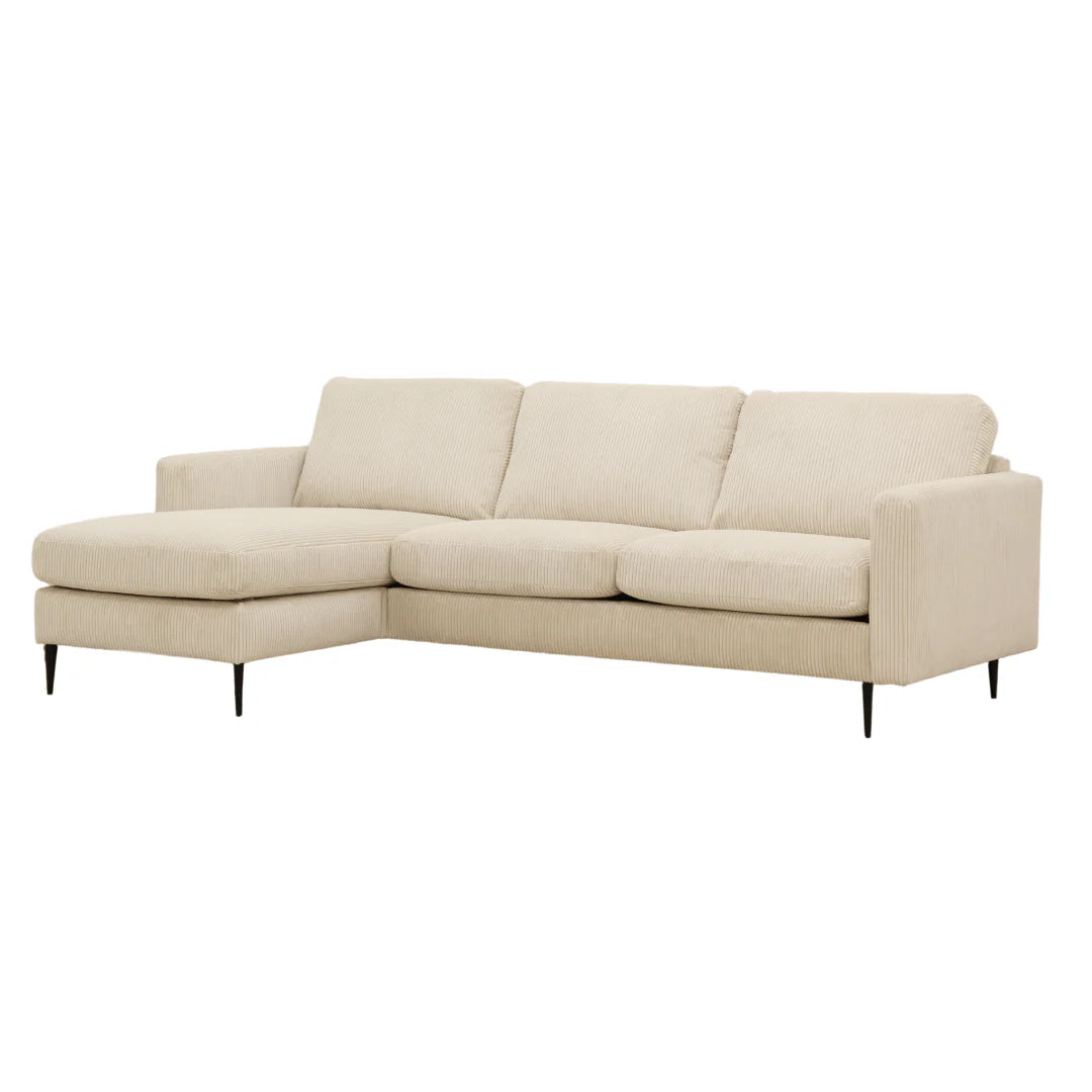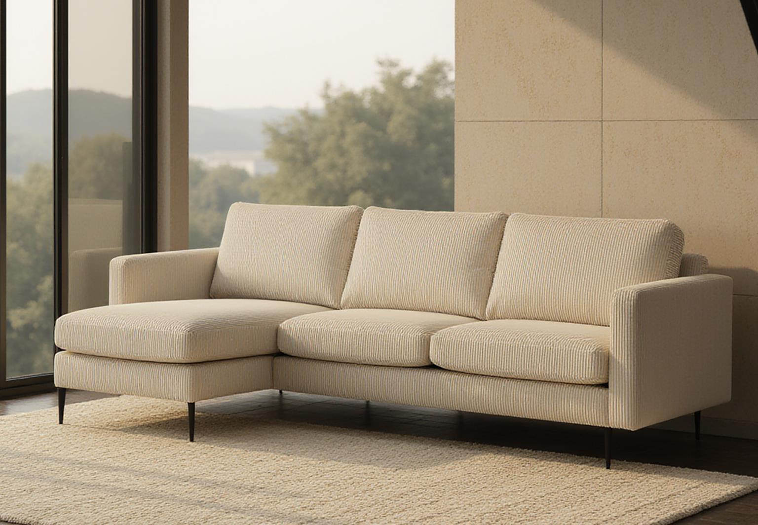 Deze bank is zo samengesteld dat de hoek zowel links als rechts gemonteerd kan worden. Dit is mogelijk omdat de zijkanten los worden meegeleverd. De klant kiest of de hoek links of rechts komt en monteert vervolgens de zijkanten.